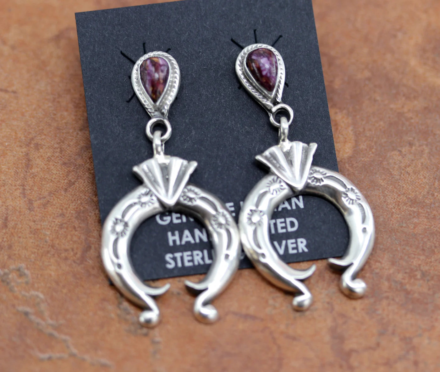 Sterling Silver Navajo Spiny Oyster Naja Earrings