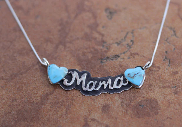 Sterling Silver Navajo Turquoise Mama Heart Necklace