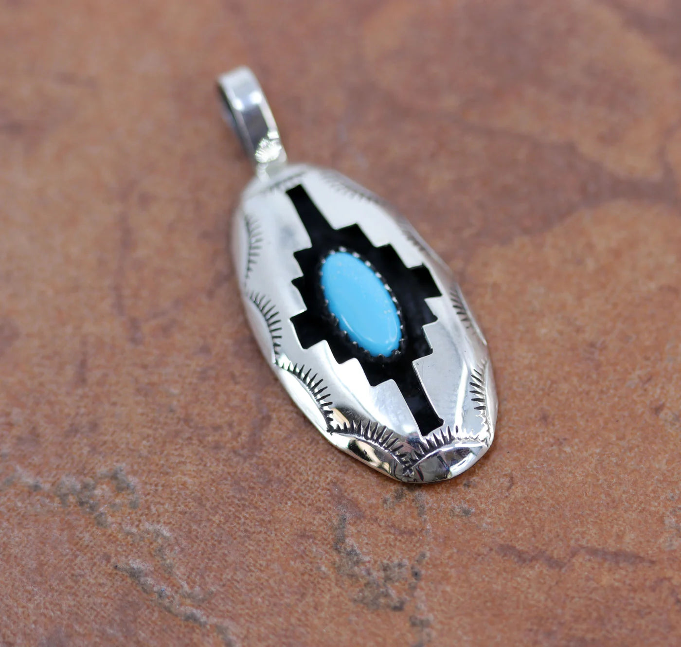 Sterling Silver Navajo Turquoise Shadowbox Pendant