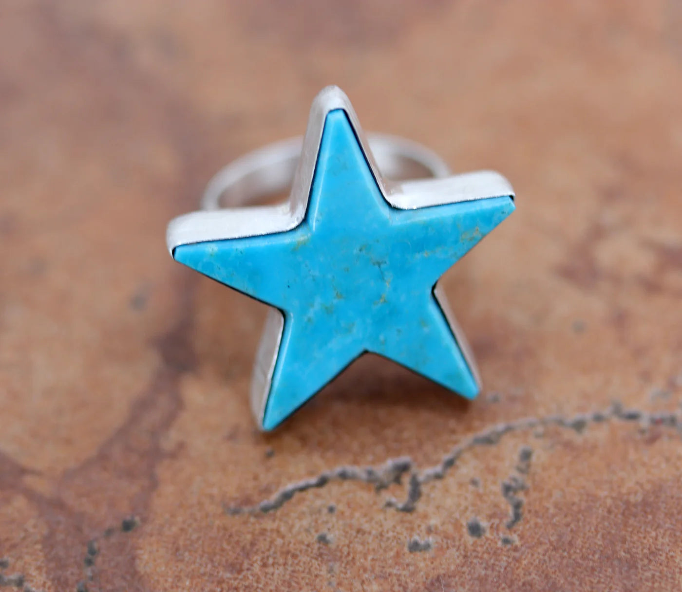 Sterling Silver Navajo Turquoise Star Adjustable Ring Size 6-8