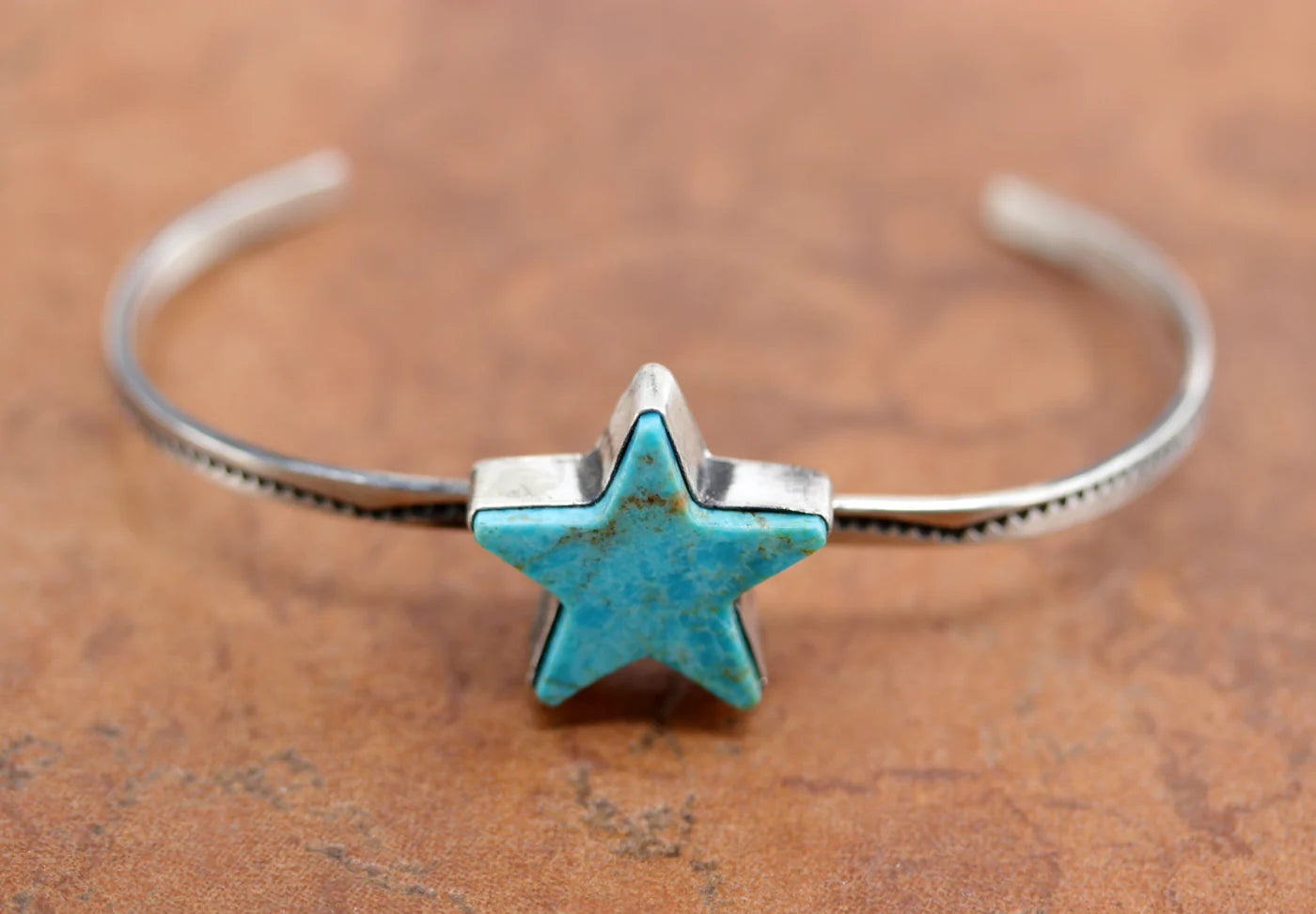Sterling Silver Navajo Turquoise Star Cuff Bracelet