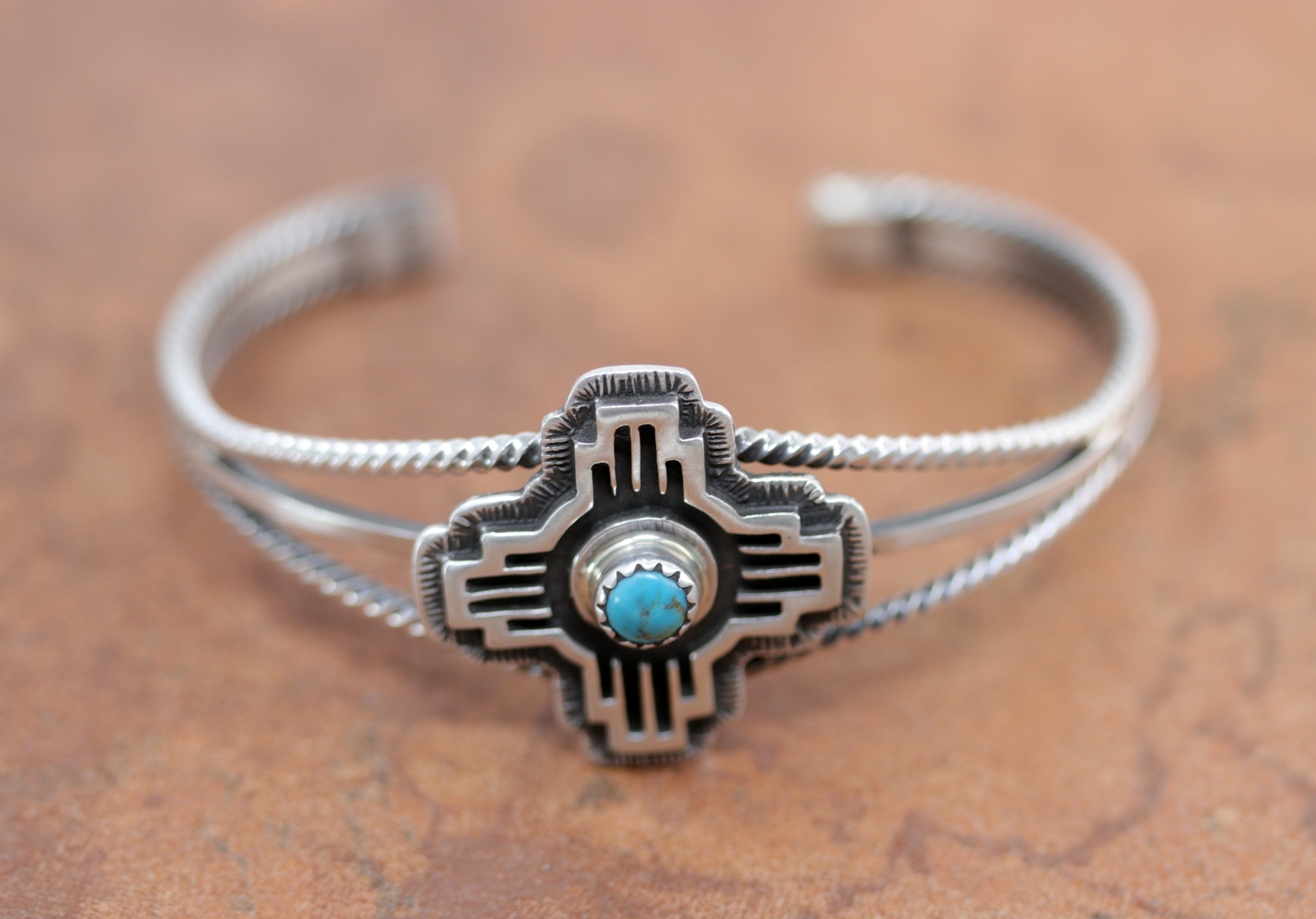 Sterling Silver Navajo Turquoise Zia Bracelet
