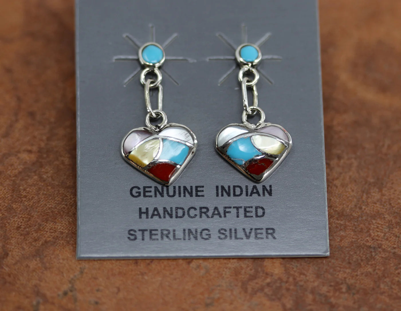 Sterling Silver Zuni Multi-Stone Heart Earrings