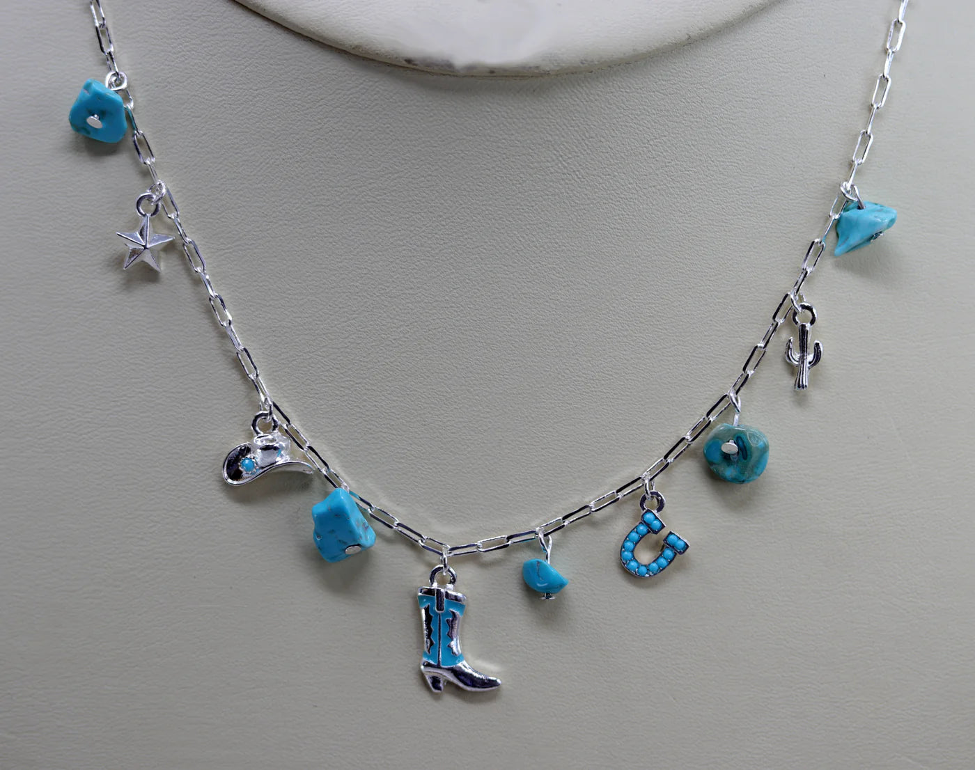 Southwest Turquoise Paper Clip Cowboy Charm Necklace