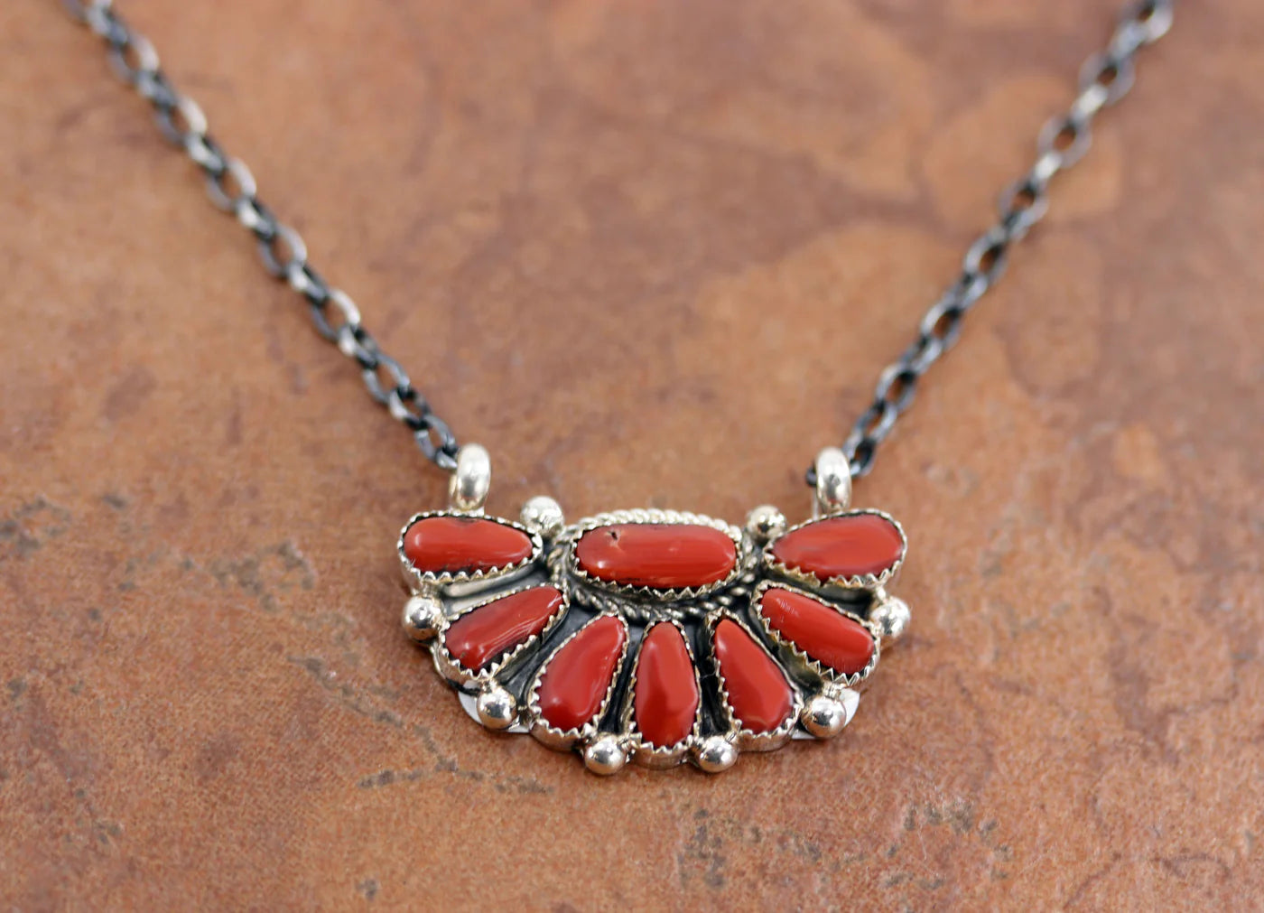 Sterling Silver Navajo Coral Bar Necklace