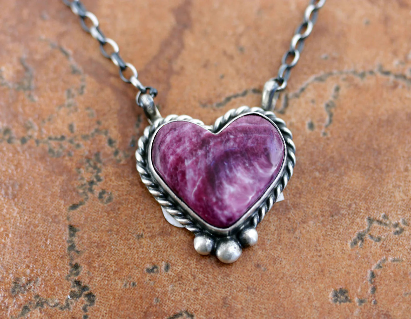 Sterling Silver Navajo Purple Spiny Oyster Heart Necklace