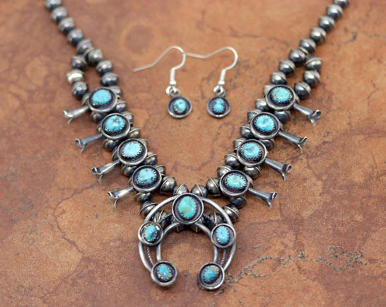 Sterling Silver Navajo Squash Blossom Necklace Earring Set