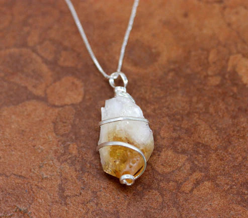 Citrine Crystal Pendant Neckalce with Silver Chain