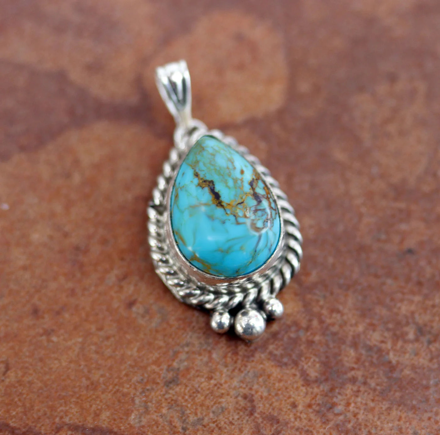 Sterling Silver Navajo Turquoise Tea Pot Pendant