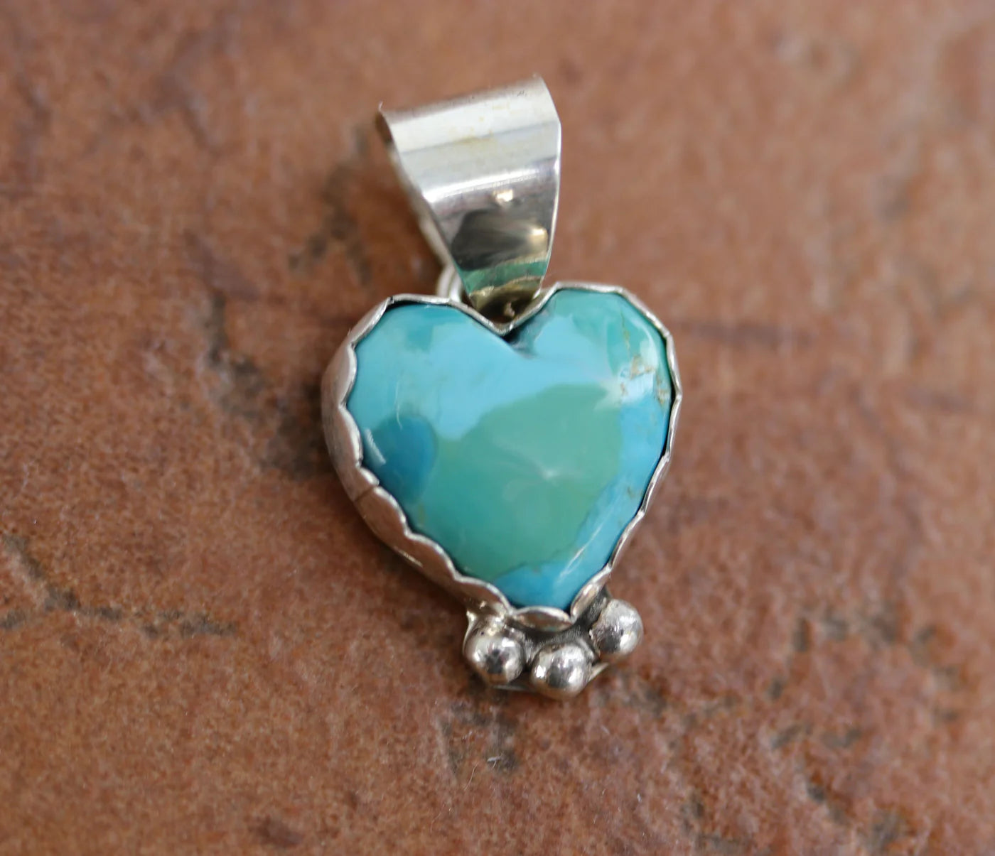A beautiful Navajo Native American pendant by Begay. It is made from sterling silver and turquoise. The pendant is about 1" in length and 5/8" in width.