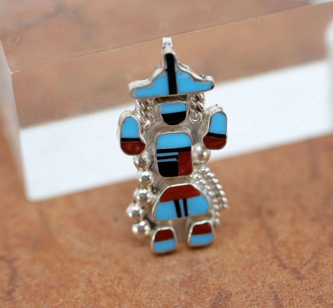 Sterling Silver Zuni Multi-Stone Kachina Pendant/Pin