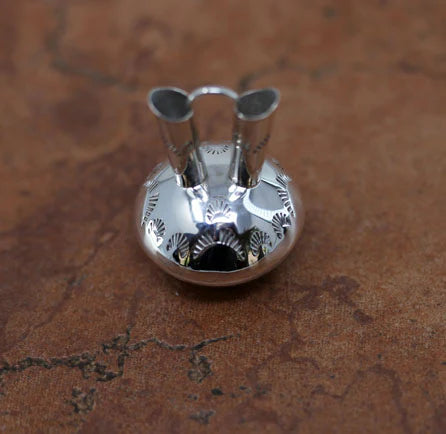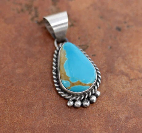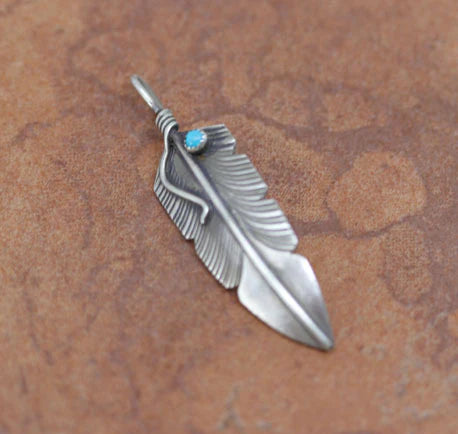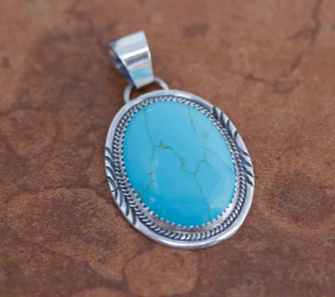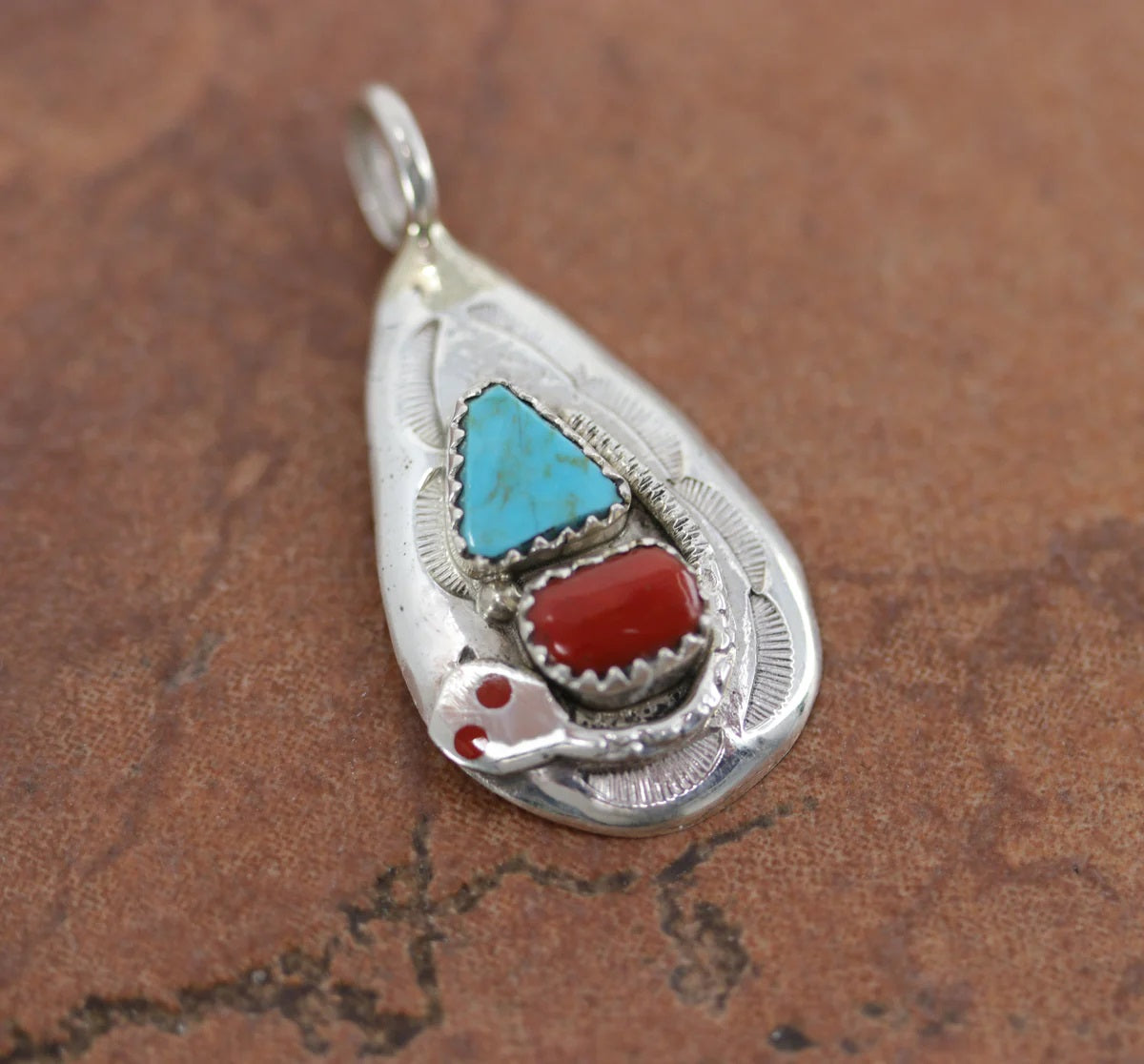 Sterling Silver Zuni Coral Turquoise Pendant by Effie C Family