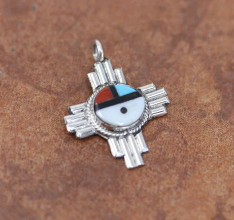 Sterling Silver Zuni Multi-Stone Sunface Cross Pendant