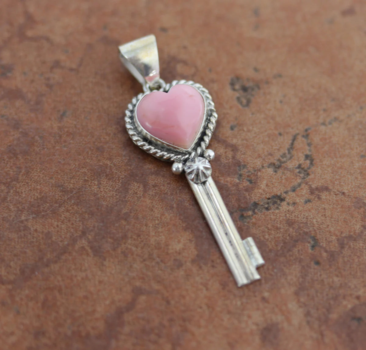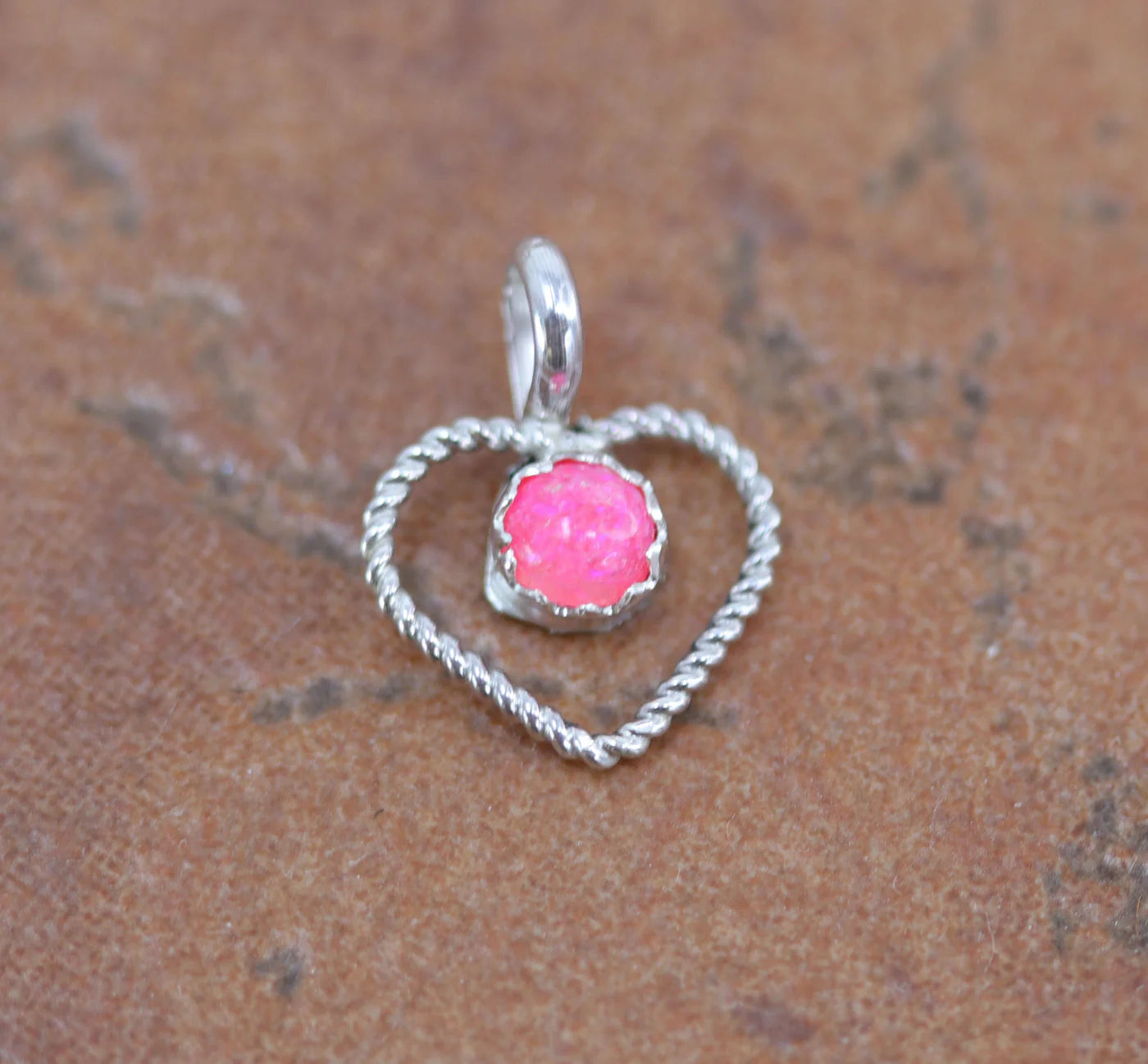 Sterling Silver Navajo Pink Created Opal Twist Wire Heart Pendant