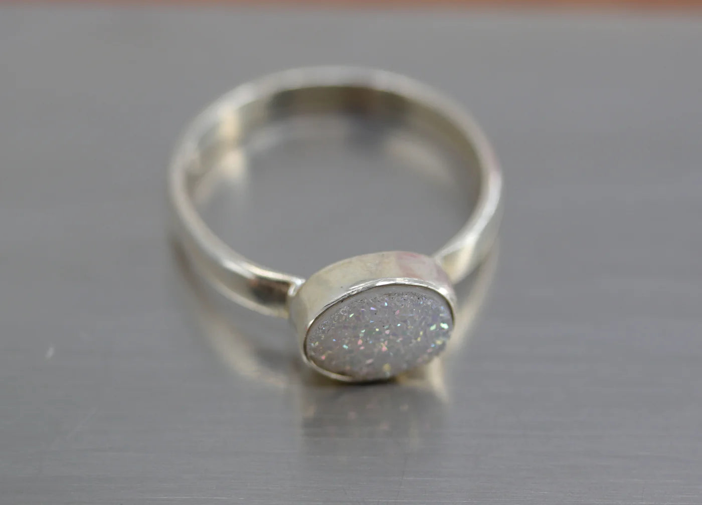 Beautiful ring made from sterling silver and druzy. The ring size is 10 and it is 5/16" in length.