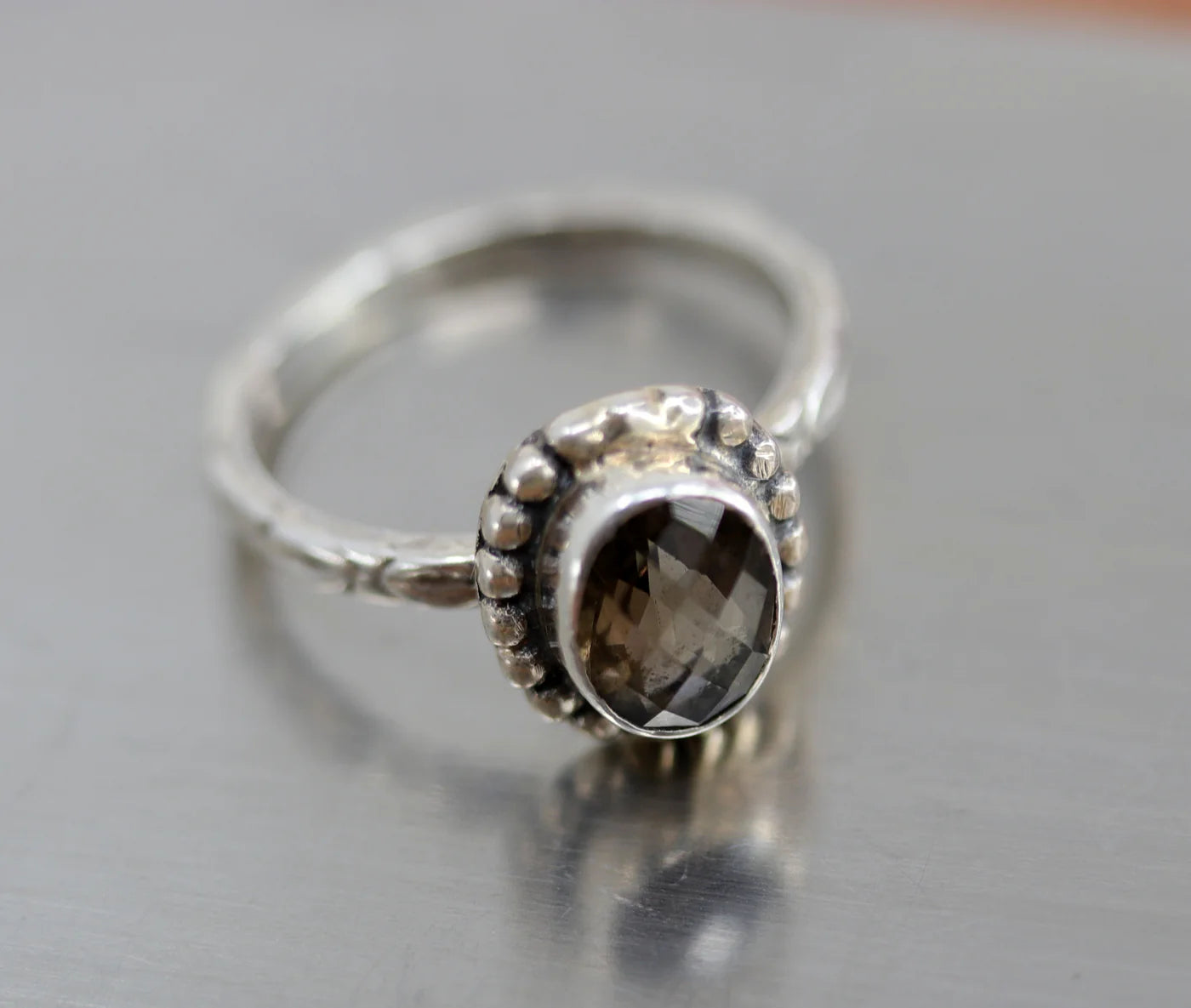 Sterling Silver Faceted Smoky Quartz Ring Size 6