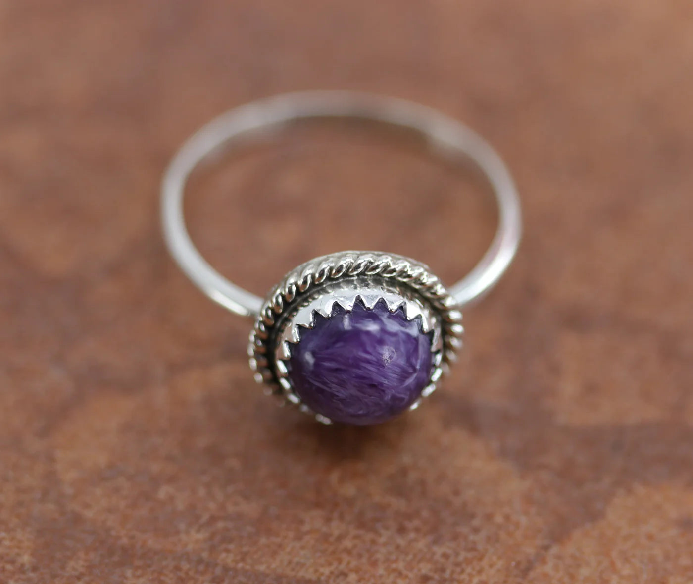 Sterling Silver Navajo Charoite Ring Size 7 3/4