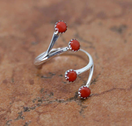 Sterling Silver Navajo Coral Spoon Ring Size 6-9