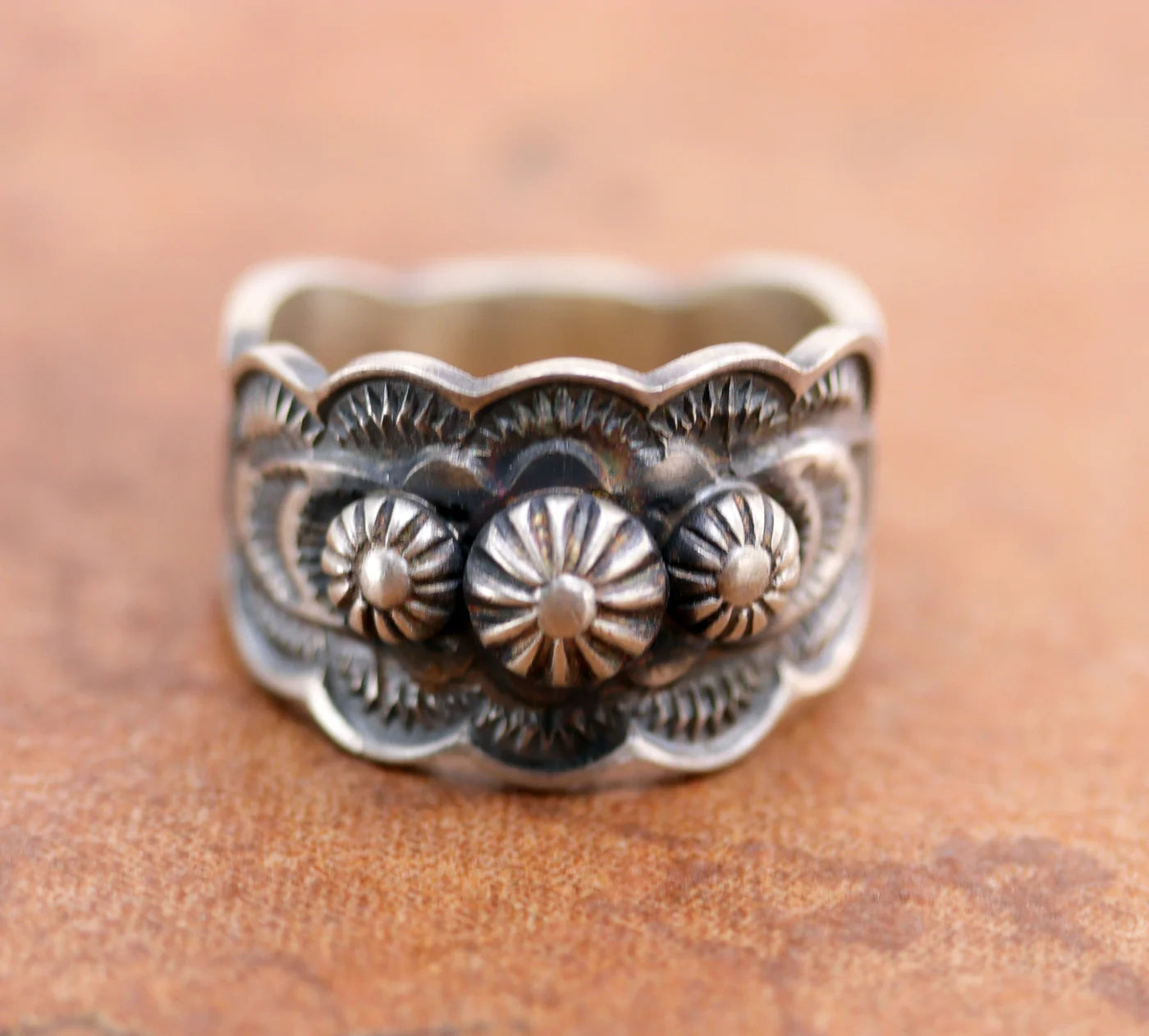 Beautiful Navajo Native American ring. It is made from sterling silver. The ring size 8 1/2 and it is 5/8" in length.