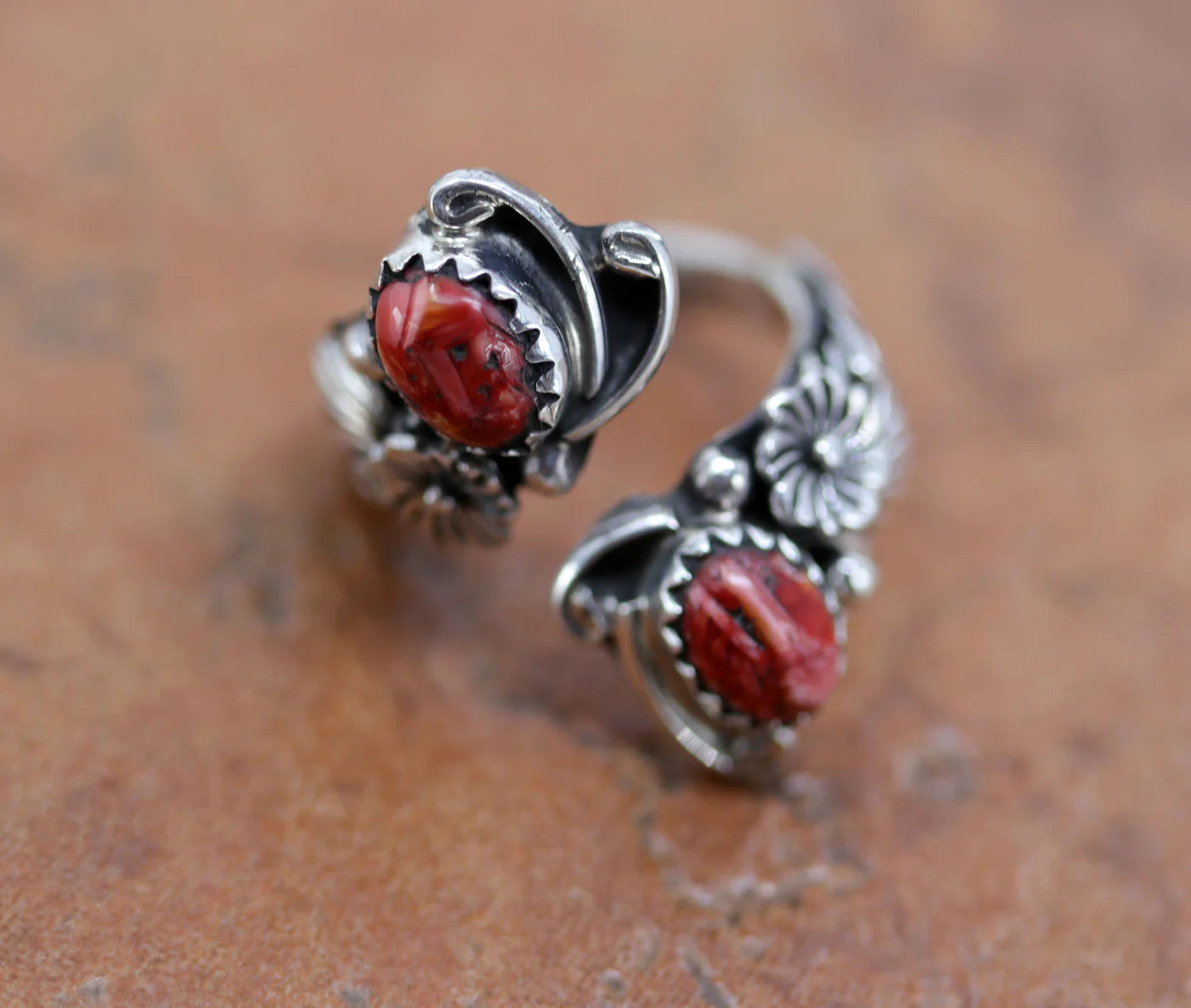 Sterling Silver Navajo Spiny Oyster Spoon Ring Size 4-6