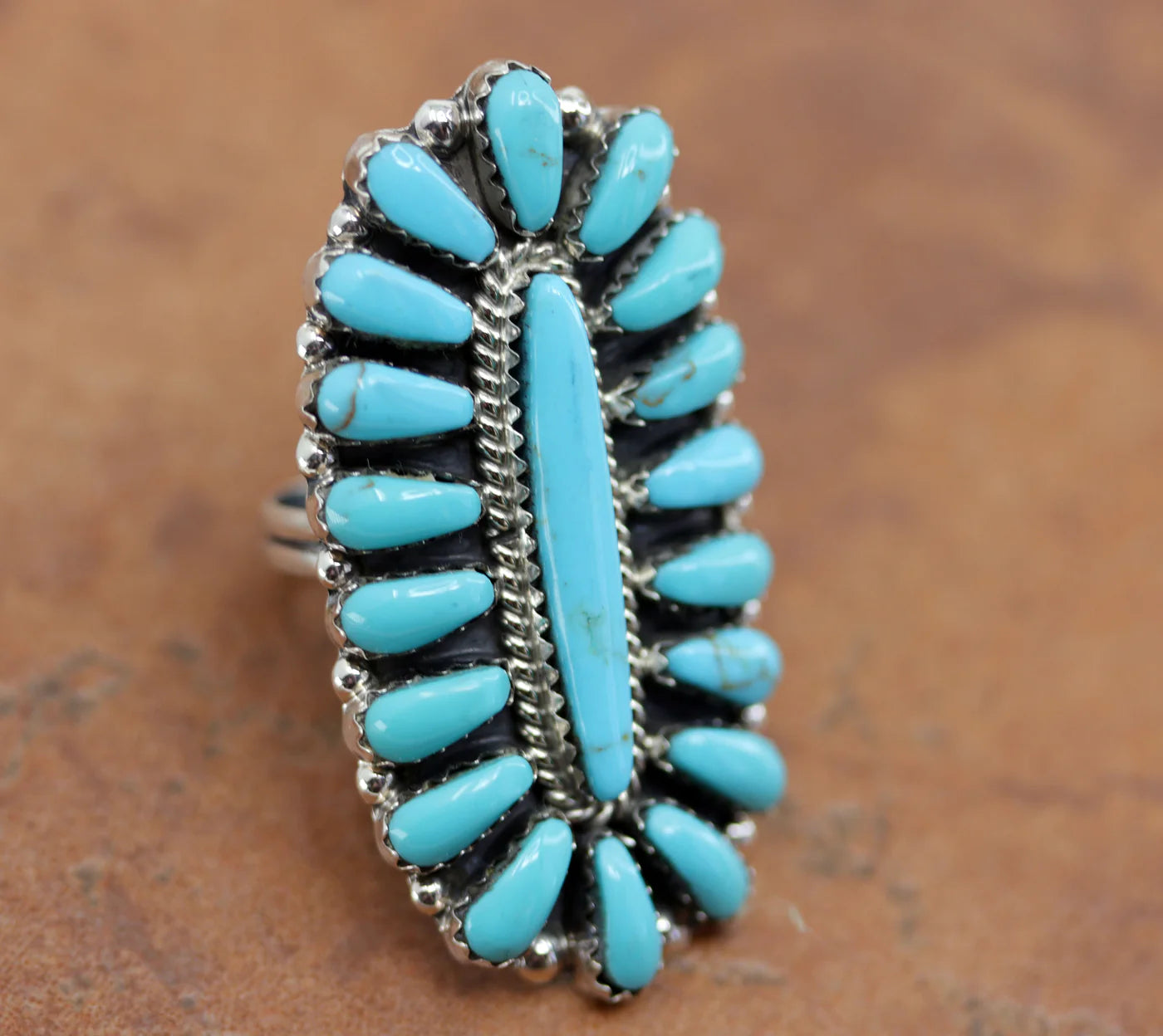 Sterling Silver Navajo Turquoise Cluster Ring Size 7 1/2