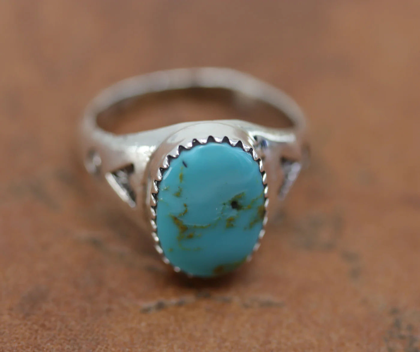 Beautiful Navajo Native American ring. It is made from sterling silver and turquoise. The ring size 7 and it is 5/8" in length.