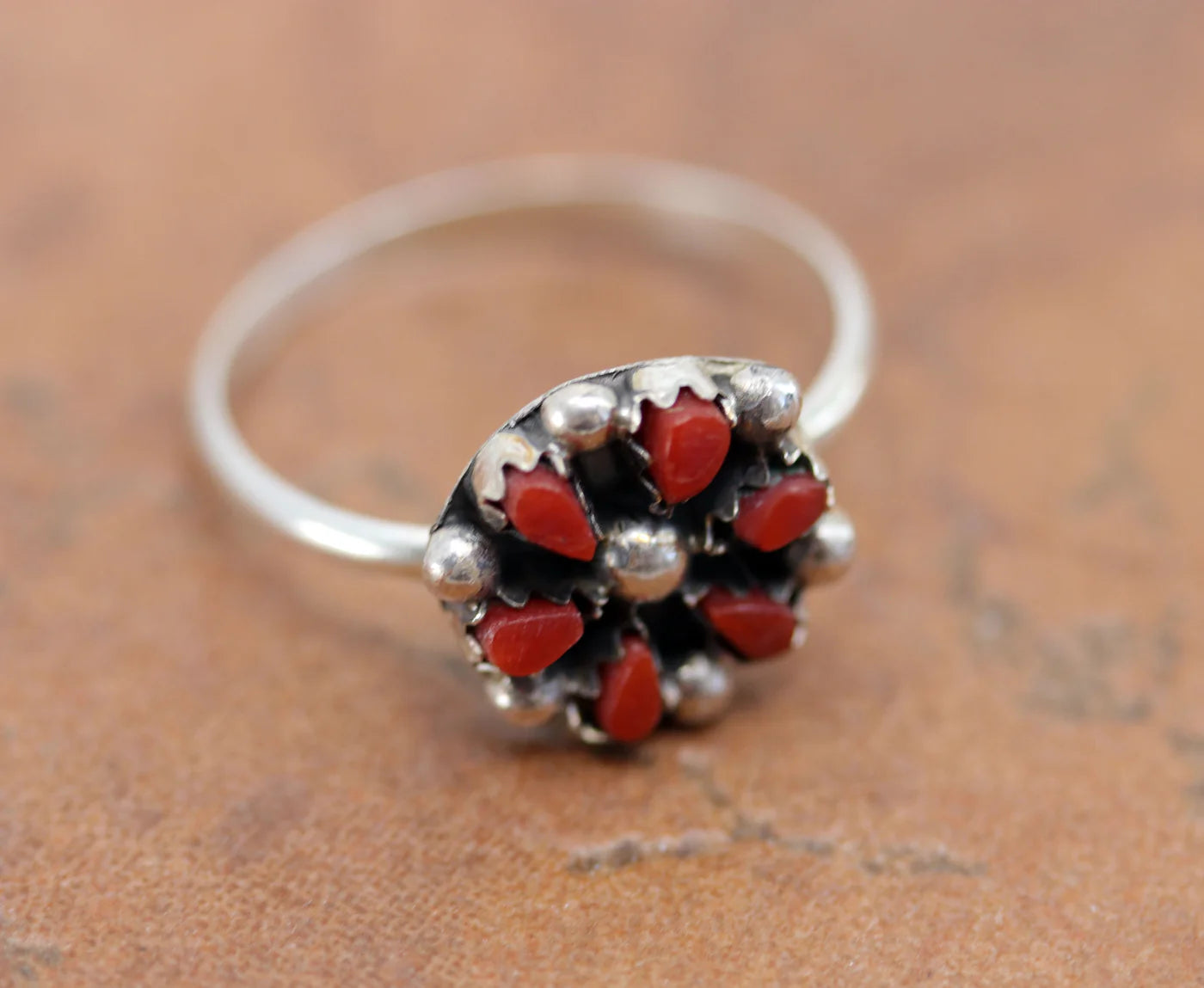 Sterling Silver Zuni Coral Cluster Ring Size 8 1/2