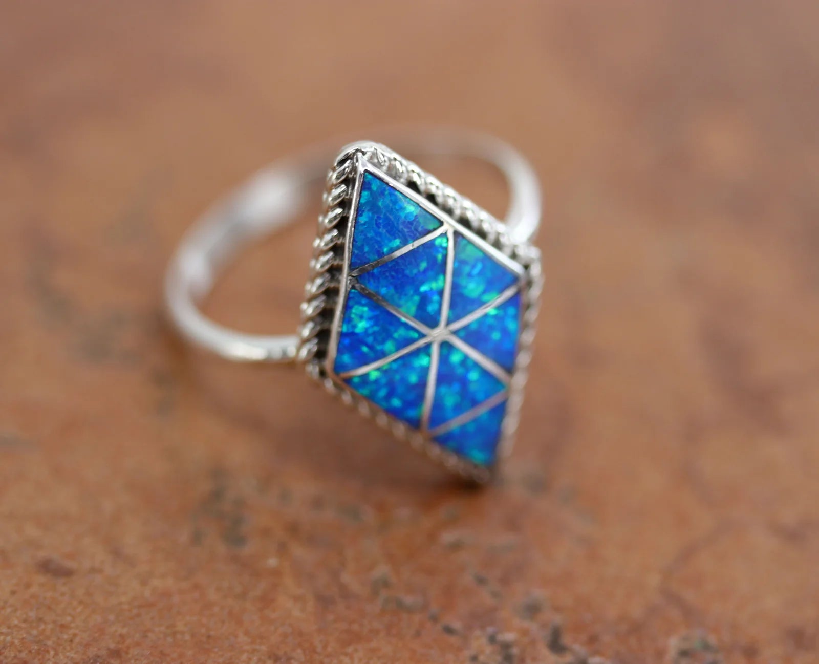 Beautiful Zuni Native American ring. It is made from sterling silver and created opal. The ring size 7 and it is 1" in length.