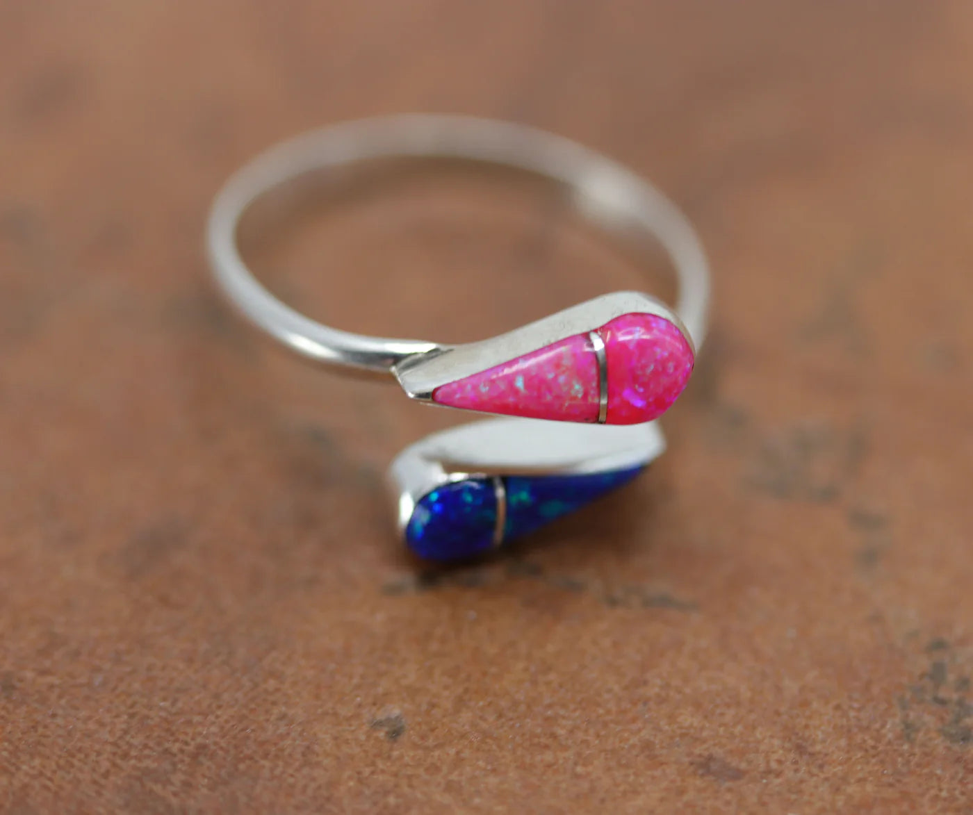 Beautiful Zuni Native American ring. It is made from sterling silver and created opal. The ring size 6-8 and it is 1/2" in length.
