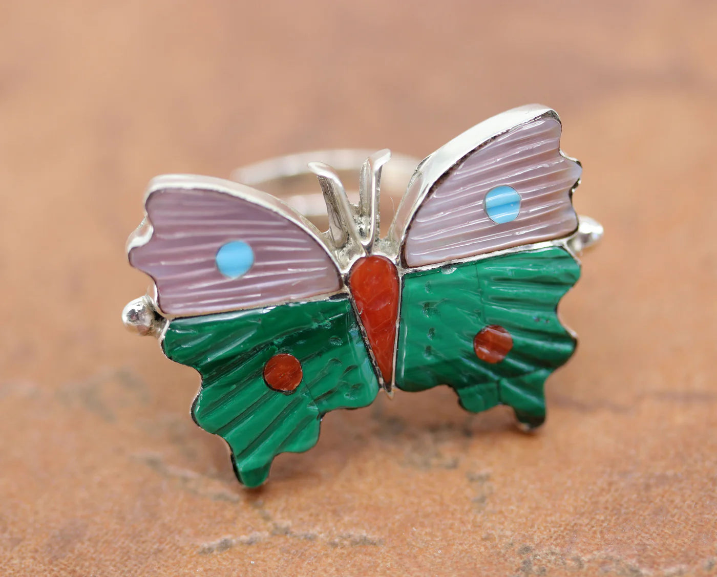 Sterling Silver Zuni Multi-Stone Butterfly Ring Size 6-8