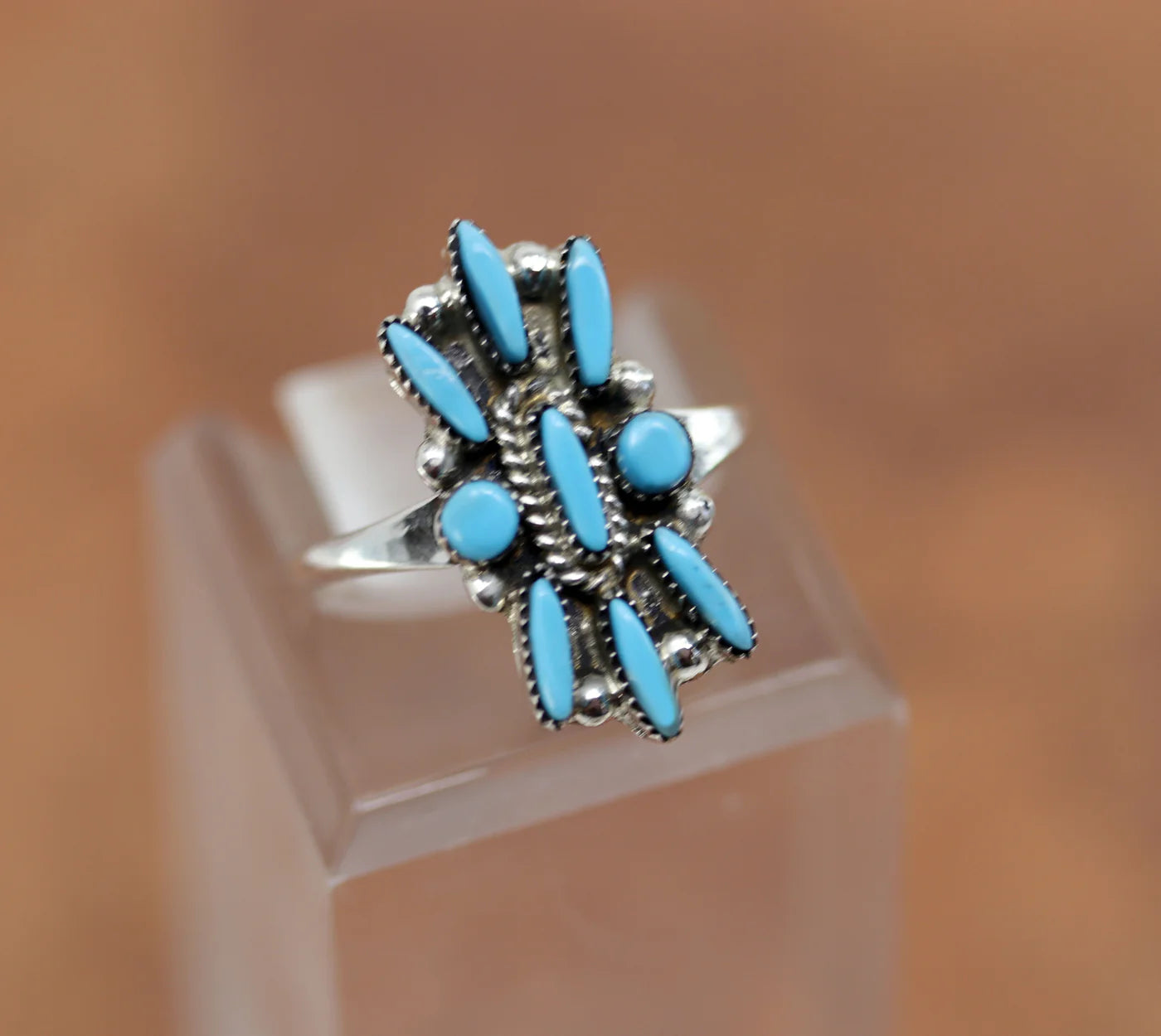 Sterling Silver Zuni Turquoise Cluster Ring Size 8
