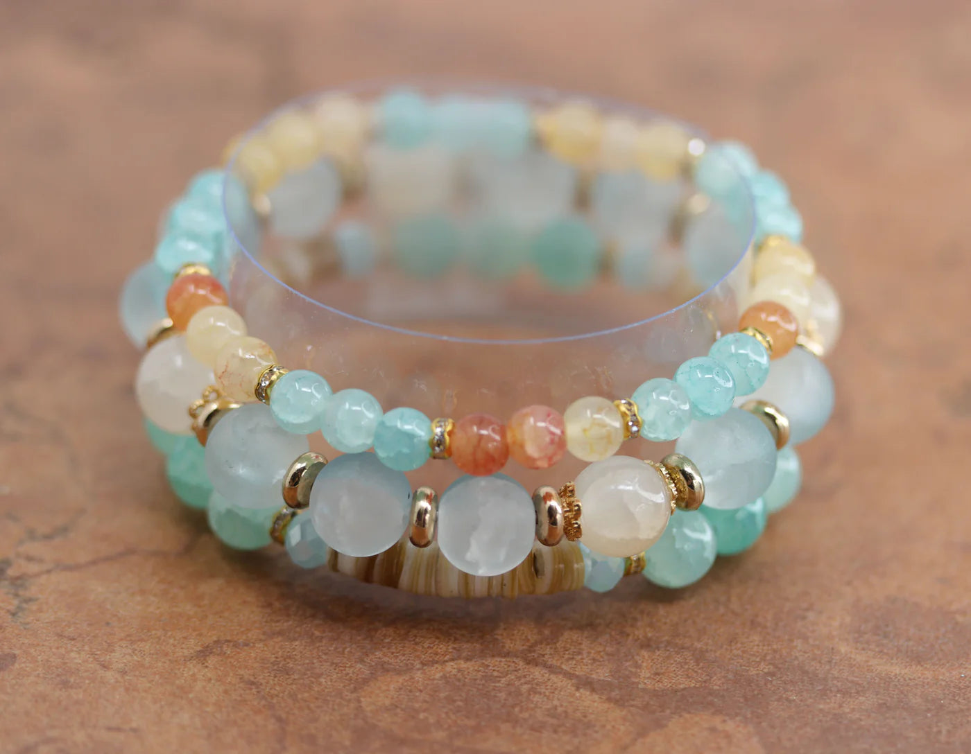 Beautiful bracelet that is made from zinc alloy, the bracelets can be stacked or worn separately, all 3 pieces are included. The bracelet is stretchable and fits most sizes. The width of beads varies from 6-8 mm.
