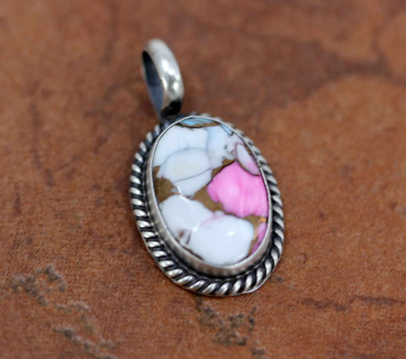 Sterling Silver Navajo Cotton Candy Dahlia Turquoise Pendant