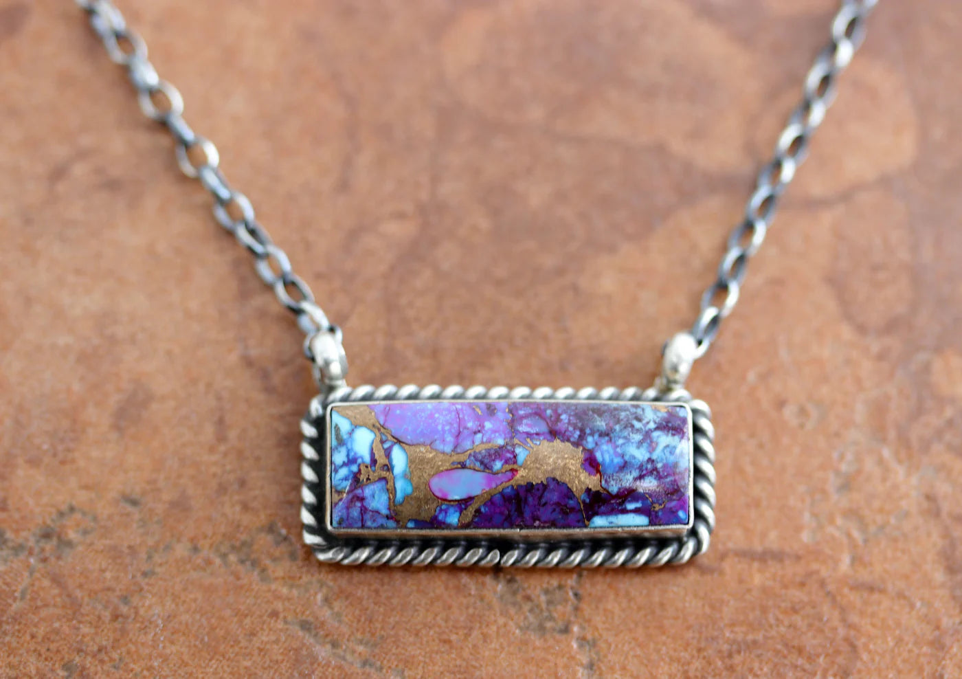 Sterling Silver Navajo Mojave Turquoise Bar Necklace