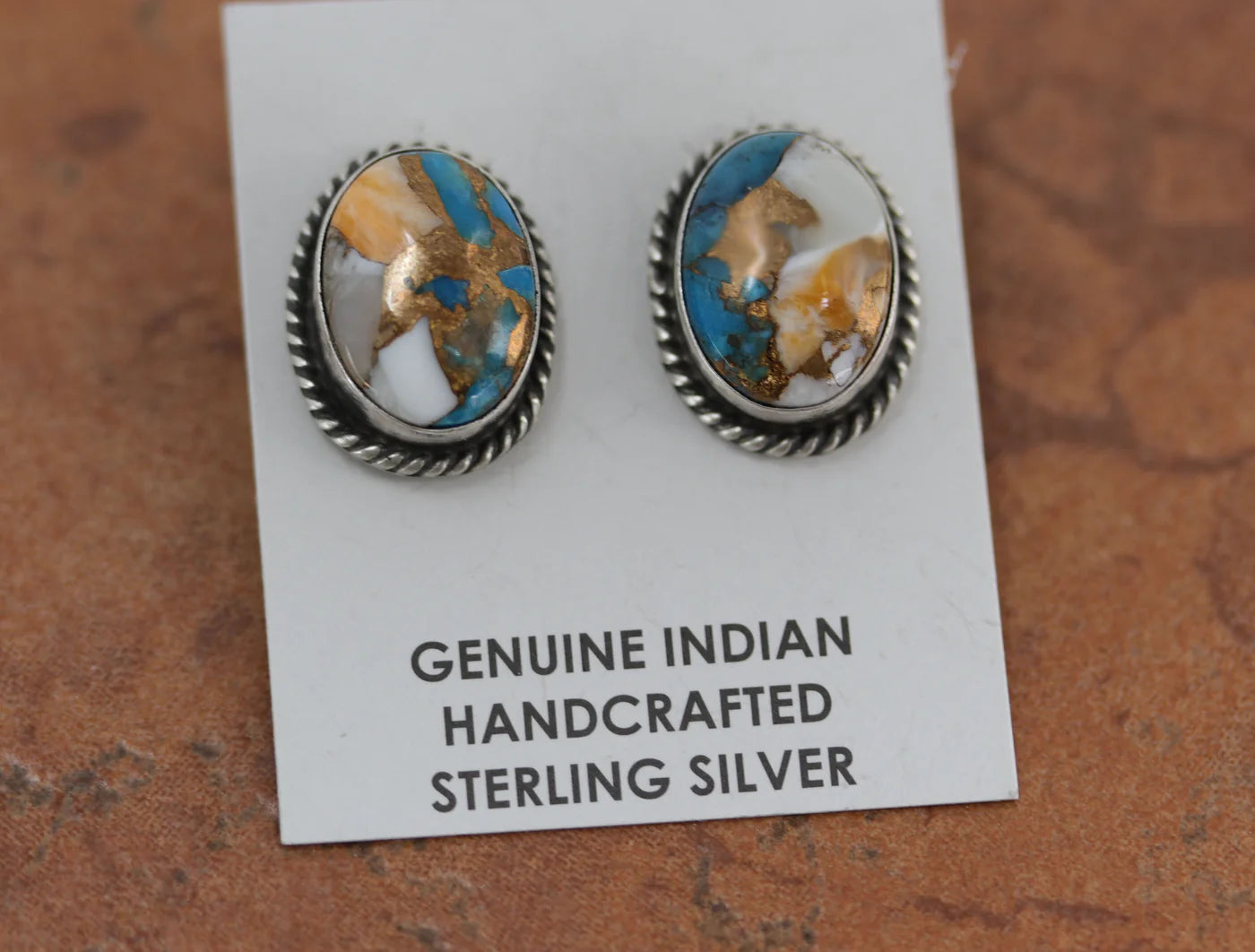 Sterling Silver Navajo Mojave Turquoise Earrings