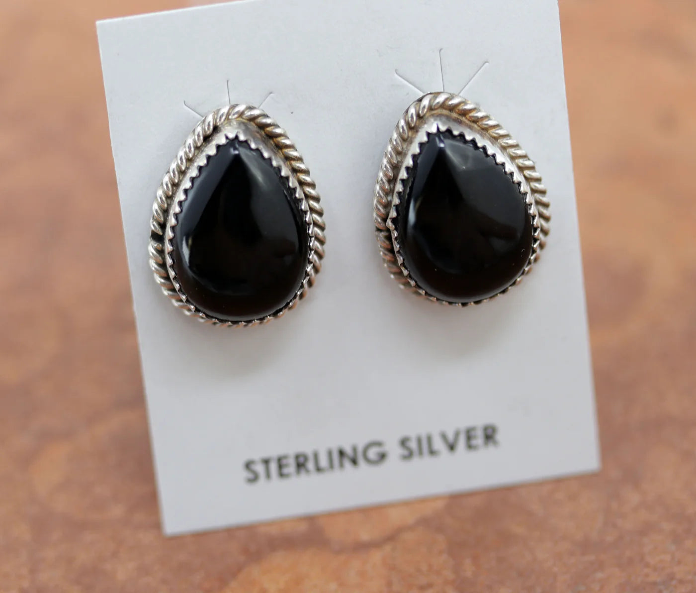 Beautiful Navajo Native American earrings. They are made from sterling silver and onyx. The earrings are about 1" in length, and 3/4" in width.