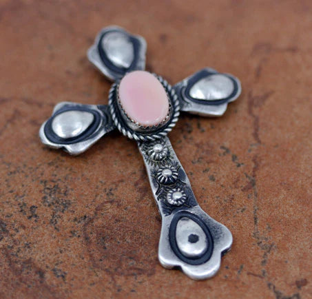 Sterling Silver Navajo Pink Quartz Cross Pendant