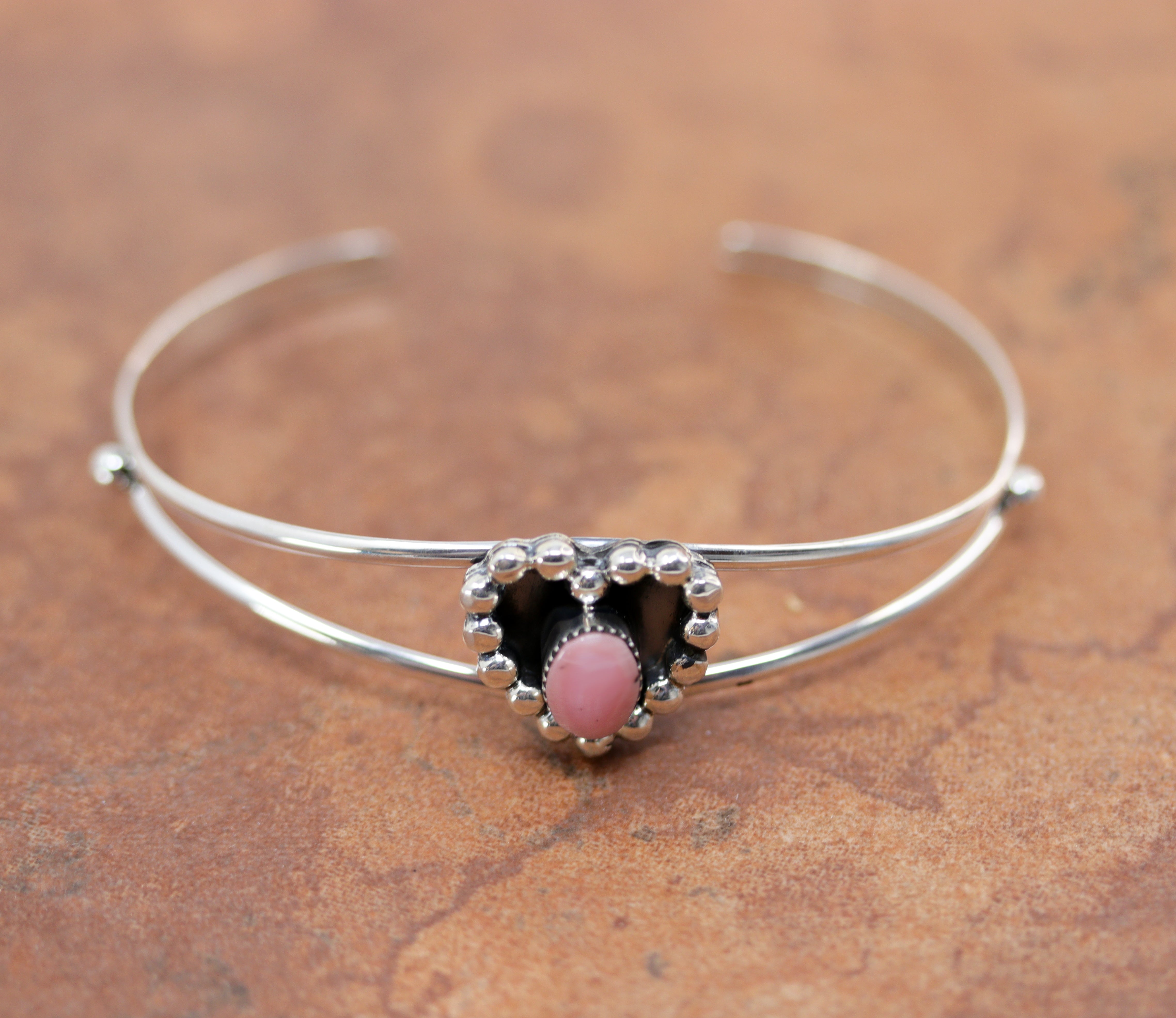 Sterling Silver Navajo Pink Quartz Heart Bracelet