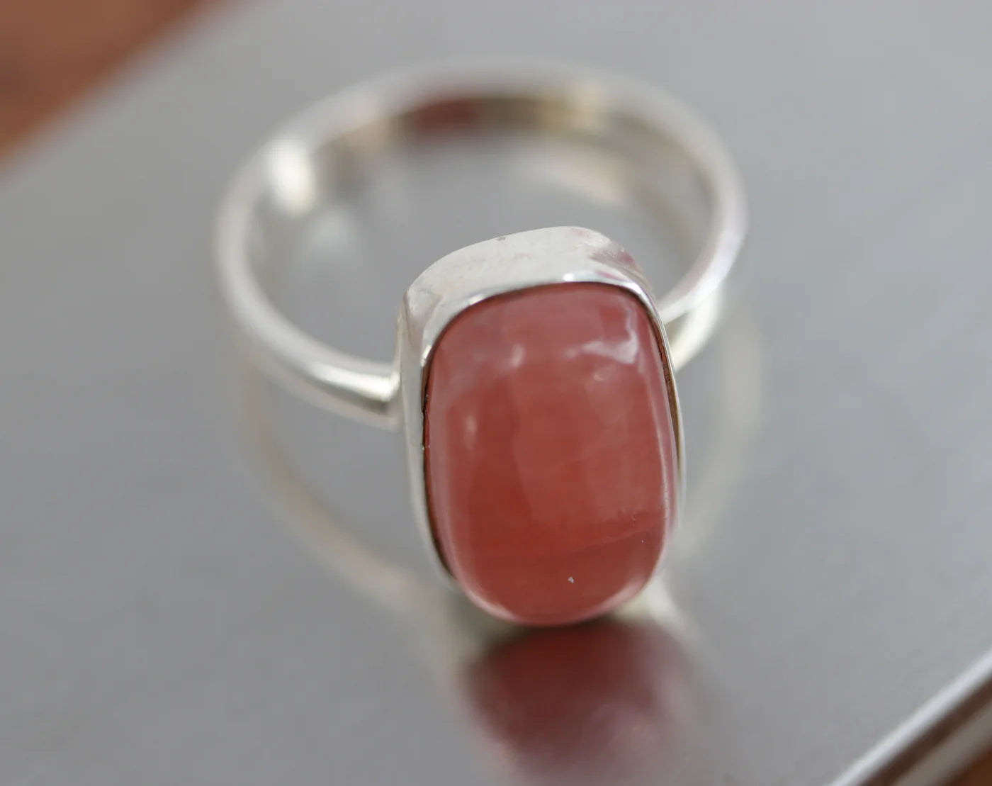 Sterling Silver Pink Rhodochrosite Ring Size 10