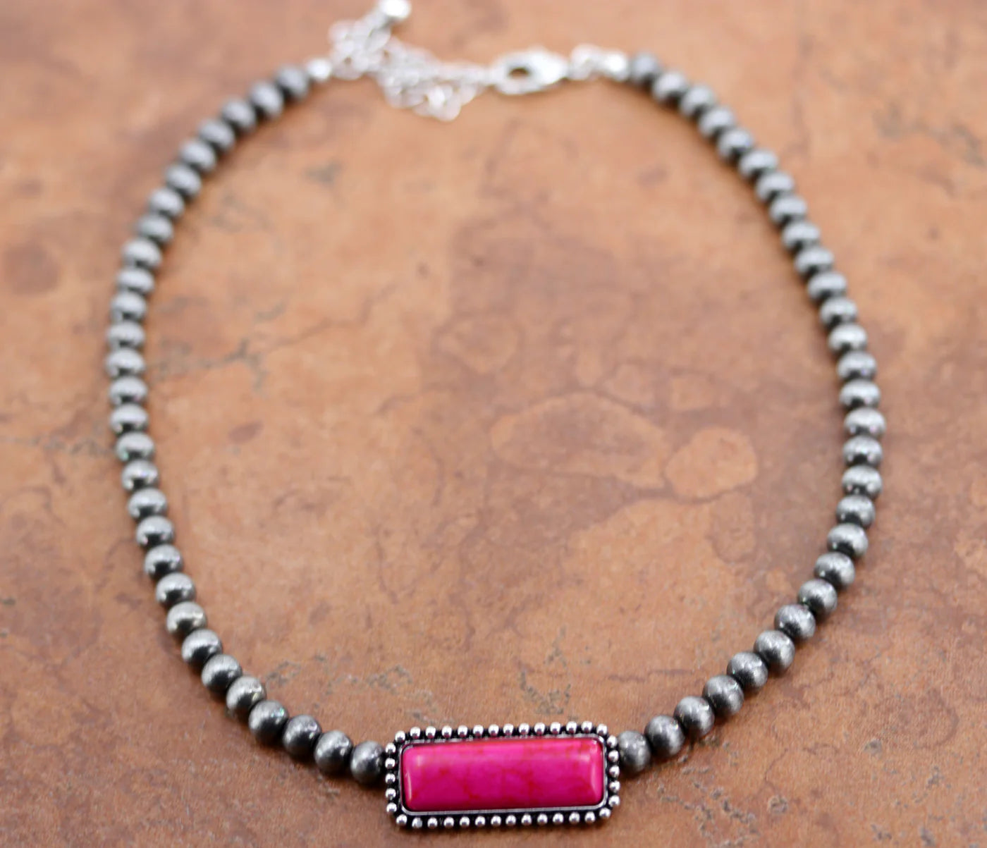 Cowgirl Pearl Pink Choker Bar Necklace