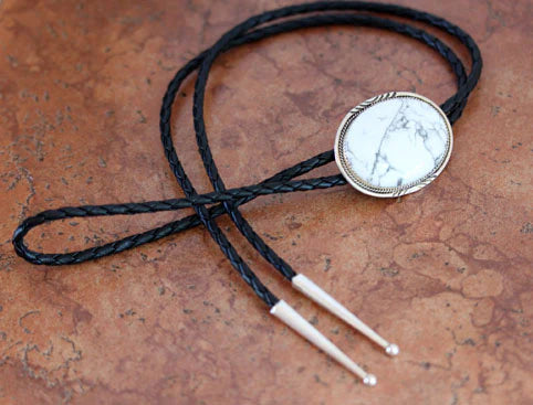Sterling Silver Navajo Howlite Bolo Tie