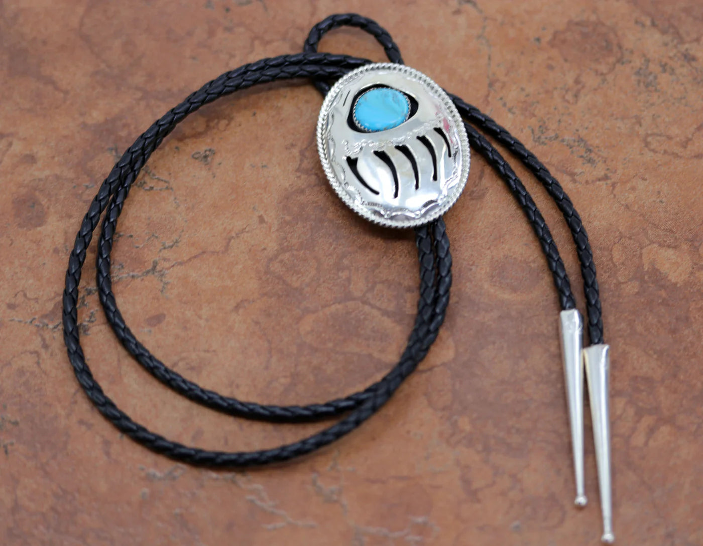 Sterling Silver Navajo Turquoise Bear Paw Bolo Tie