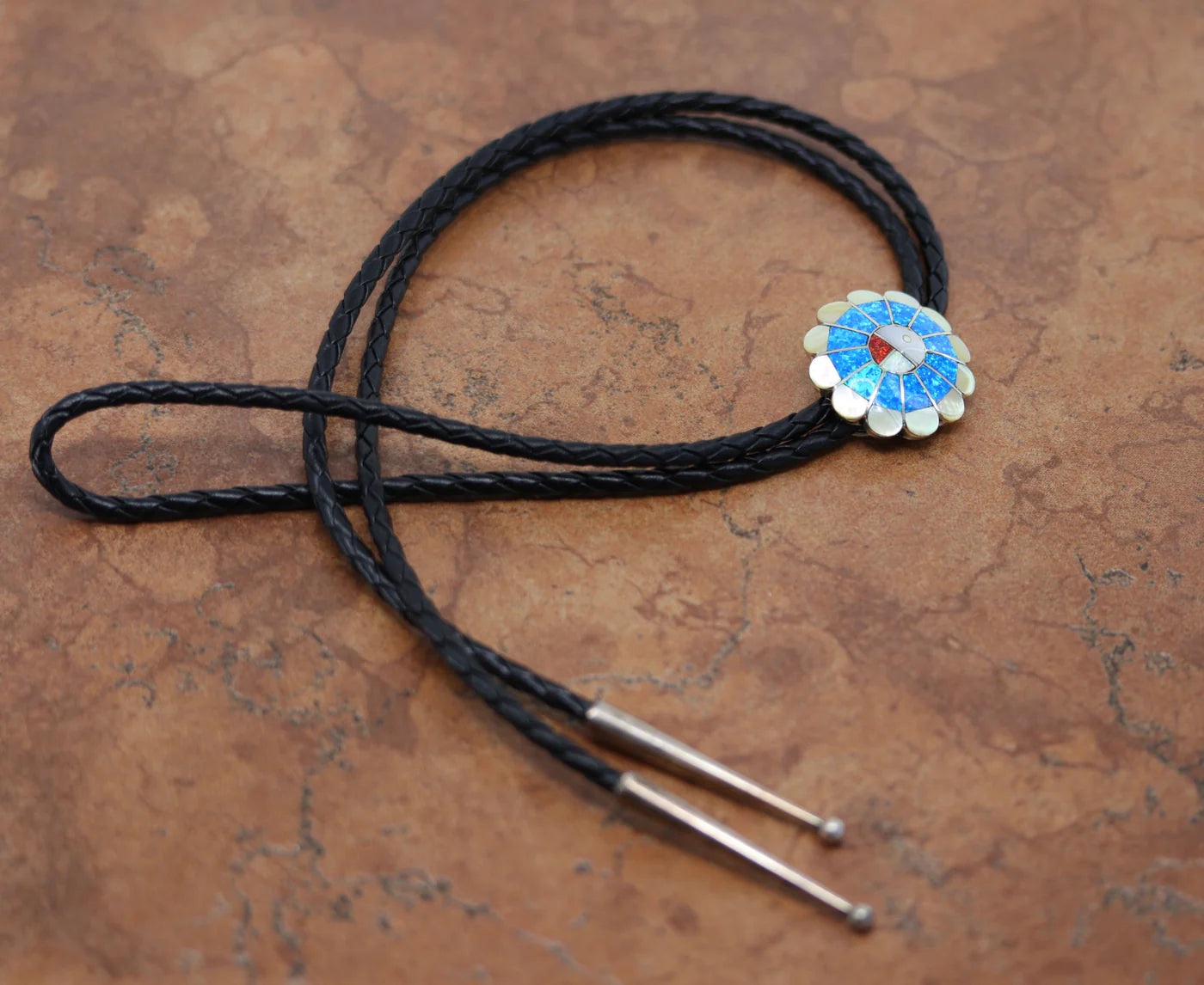 Sterling Silver Zuni Multi-Stone Sunface Bolo Tie