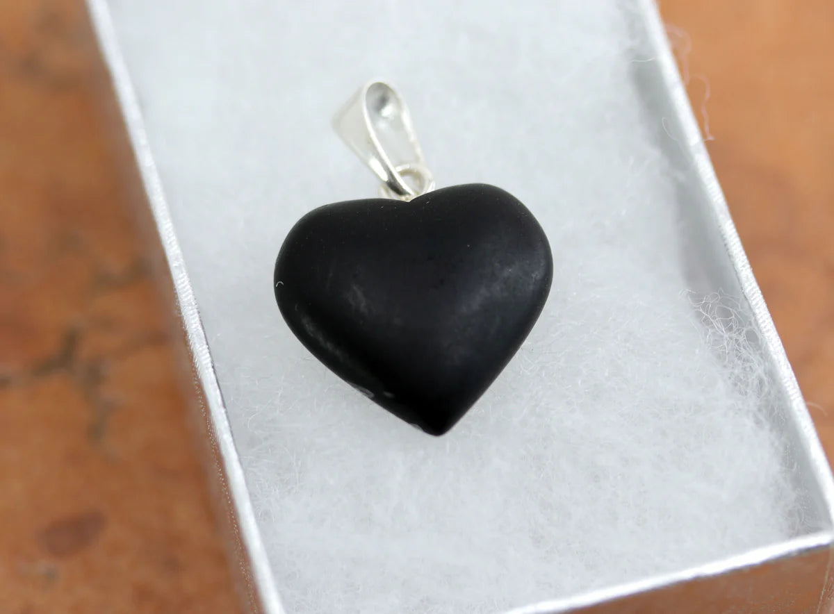 Sterling Silver Black Baltic Amber Heart Pendant