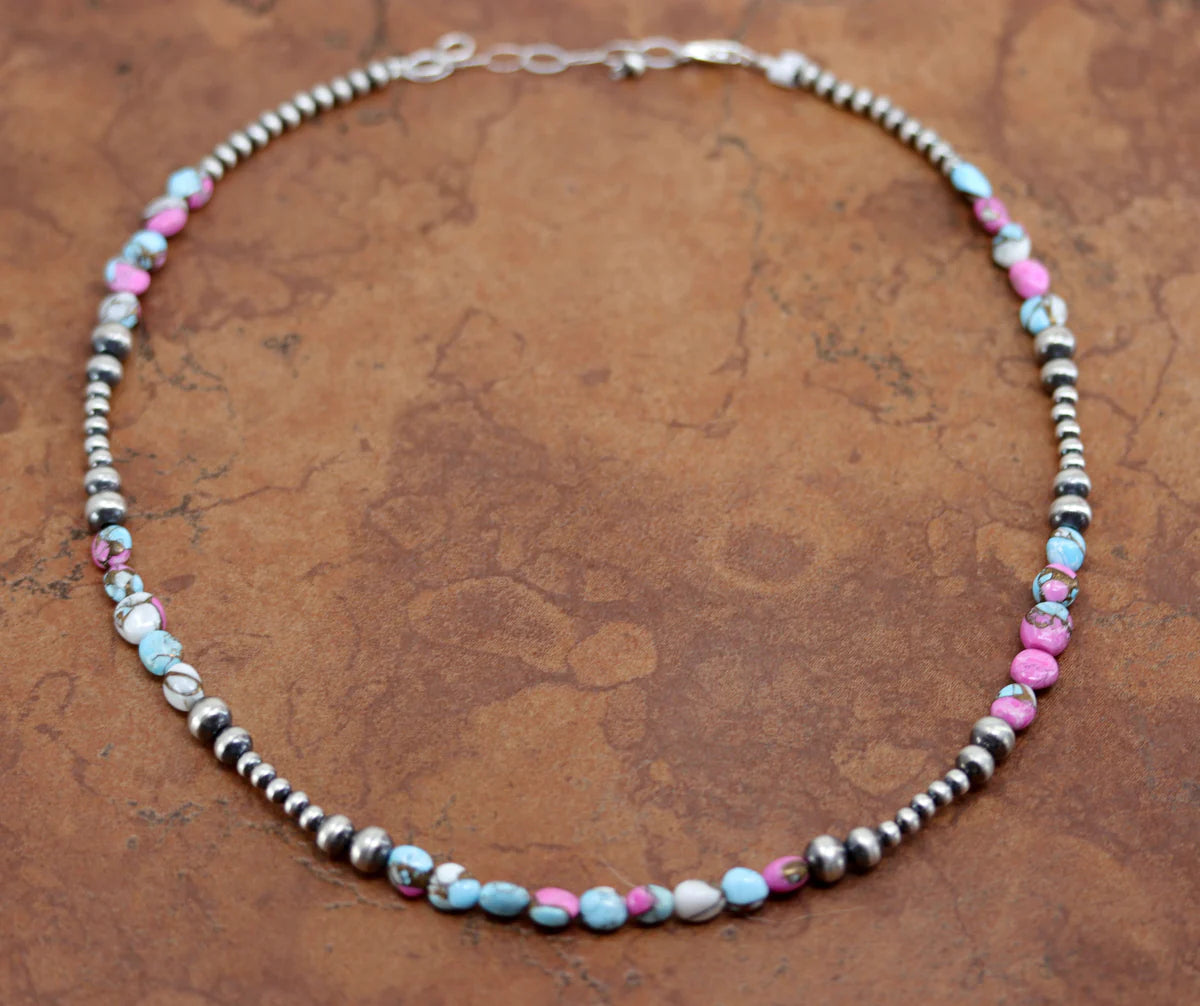 Sterling Silver Navajo Pearl Cotton Candy Dahlia Turquoise Necklace