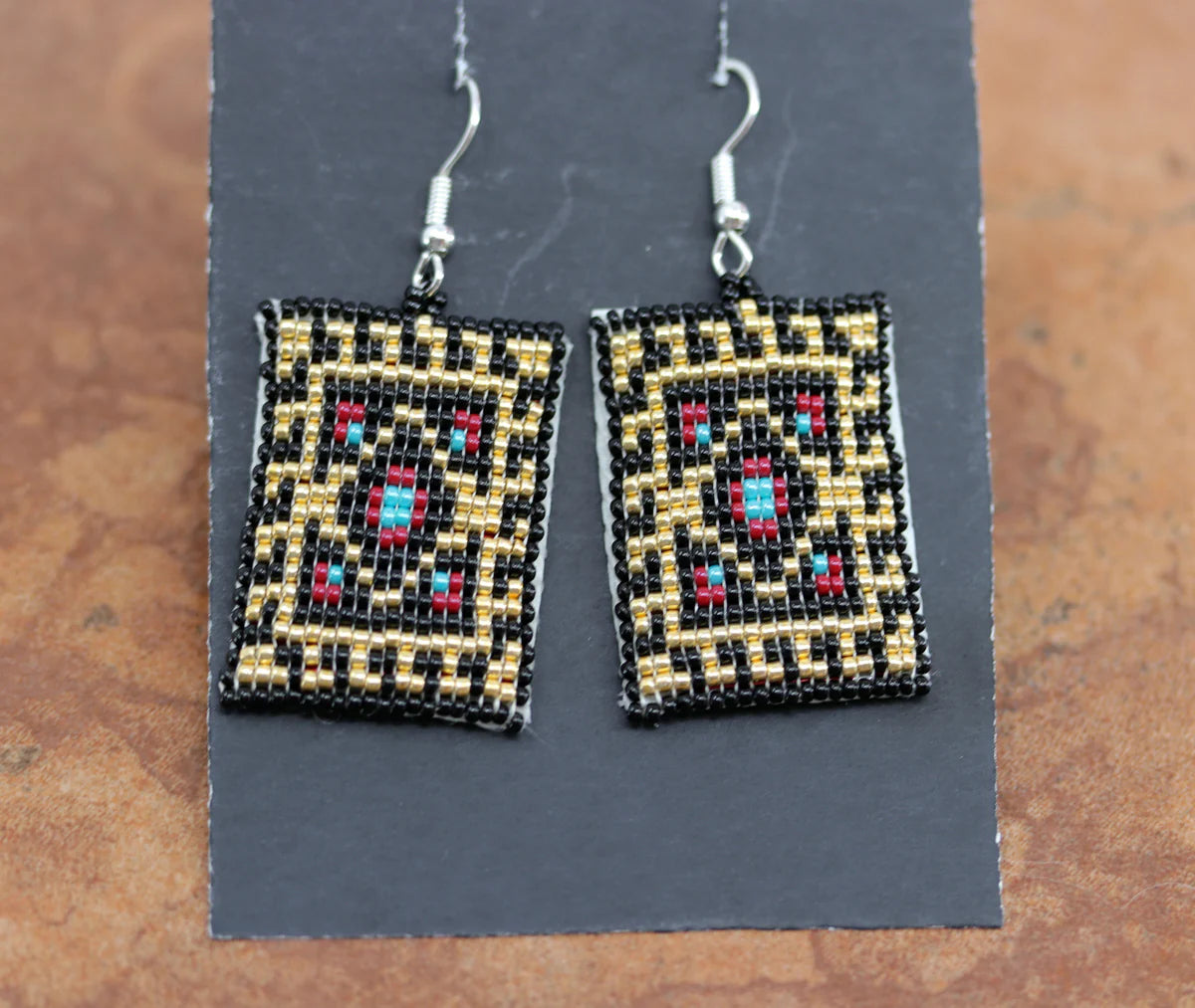 Sterling Silver Navajo Beaded Rug Style Earrings