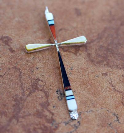 Sterling Silver Zuni Multi-Stone Cross Pendant