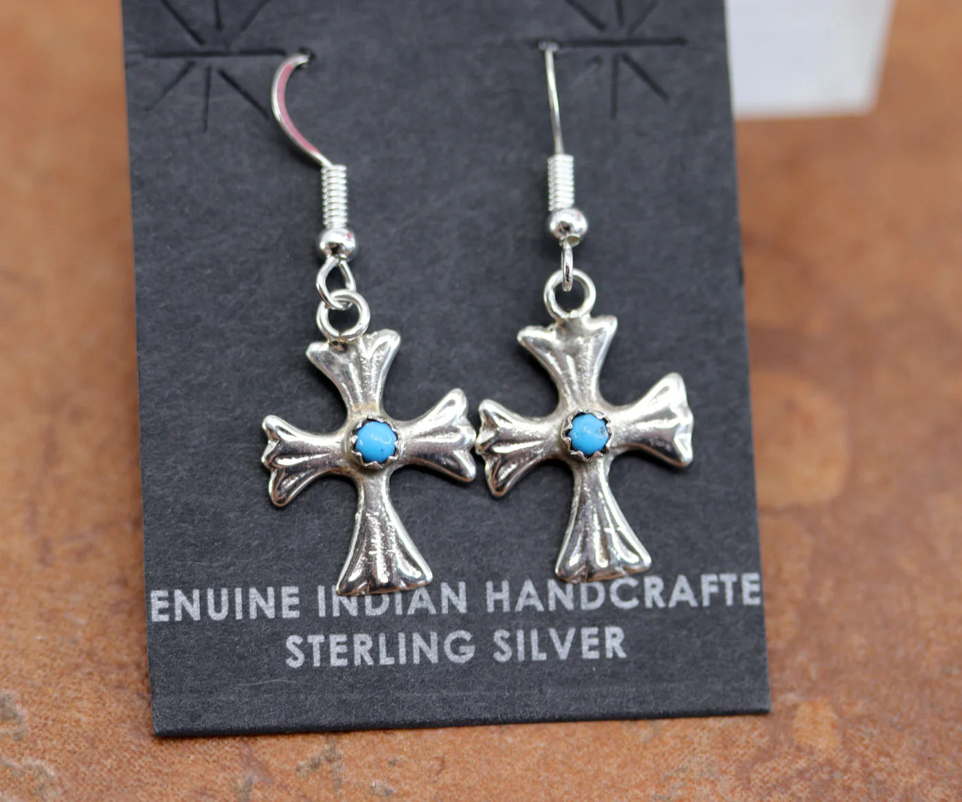 Sterling Silver Navajo Turquoise Cross Earrings