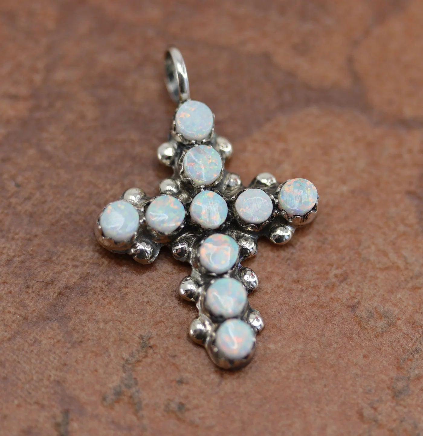 Sterling Silver Zuni Created Opal Cross Pendant