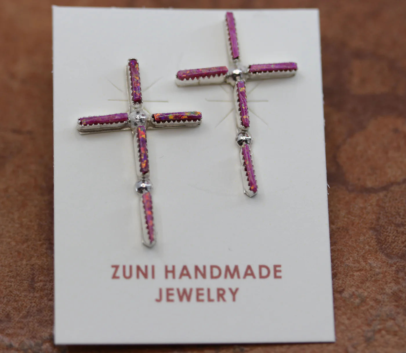 Sterling Silver Zuni Created Opal Cross Earrings